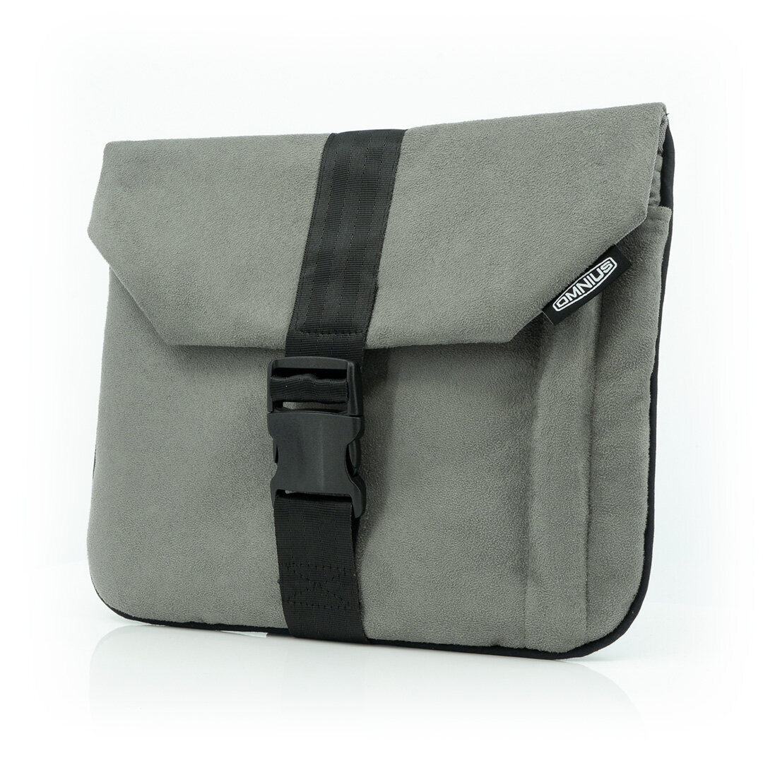 Omnius tablethylster tilbyder en stilfuld beskyttelse til din tablet. Dette hylster er håndlavet af gråt materiale med et Alcantara-look og har en solid klipslukning. Hylsteret er ikke kun holdbart, men også moderne designet.