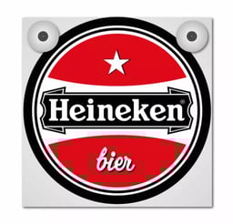 Heineken Light Box Deluxe Complete - 18x18cm - 24V OR 12V - LED (WARM WHITE) - STYLISHLY COVERED - INCL. 2m DOUBLE INSULATED CABLE - OWN PRODUCTION! Delivered without cigarette lighter. The highest quality, the best design, and the most beautiful light! Our light boxes set a new standard. Because the print is placed on the inside of the acrylic plate, it provides a very stylish illumination and gives a luxurious appearance with a gloss over the image. It has full and even lighting over the entire image, unlike the cheaper versions that are only illuminated from the center. Standard delivery time: 1-2 WEEKS ! No warranty is given against burnout on the 12V version. The displayed logos and/or trademarks are for indication purposes only. They are not original and do not indicate that the product is made and/or approved by the brand owner. They only indicate that the product is suitable for a particular brand vehicle.