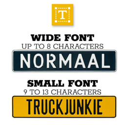 - De naam of tekst op de kentekenplaat wordt nauwkeurig uitgelijnd, waardoor links en rechts van de tekst een even grote lege ruimte ontstaat.